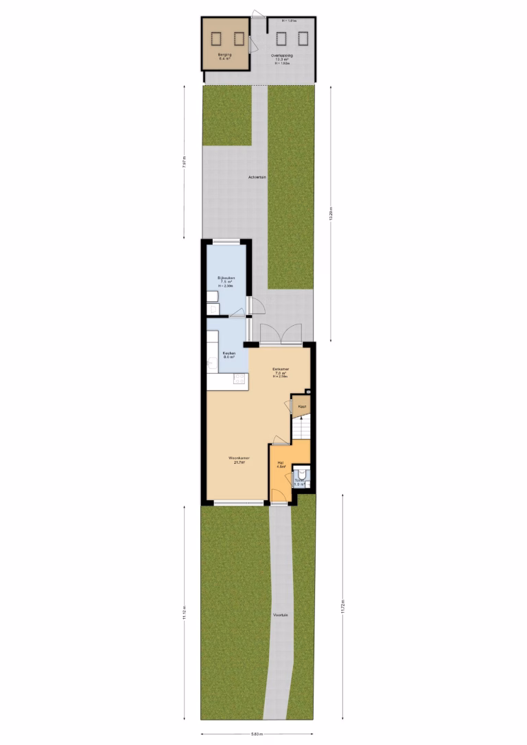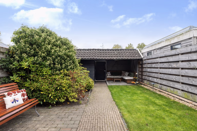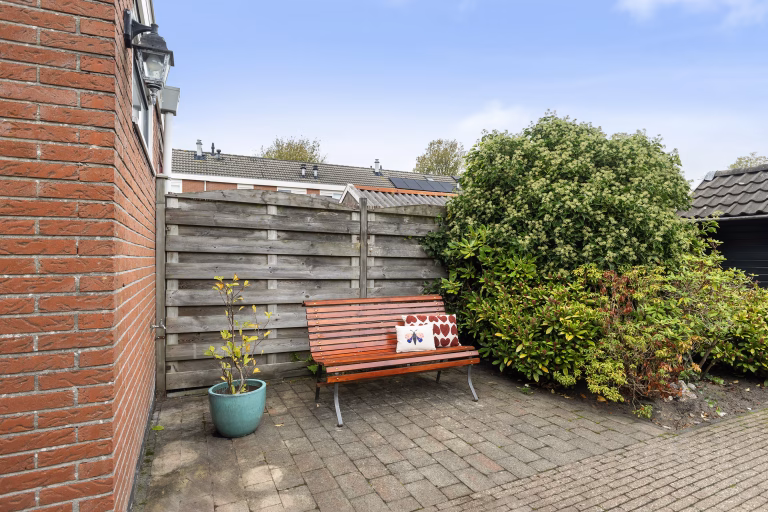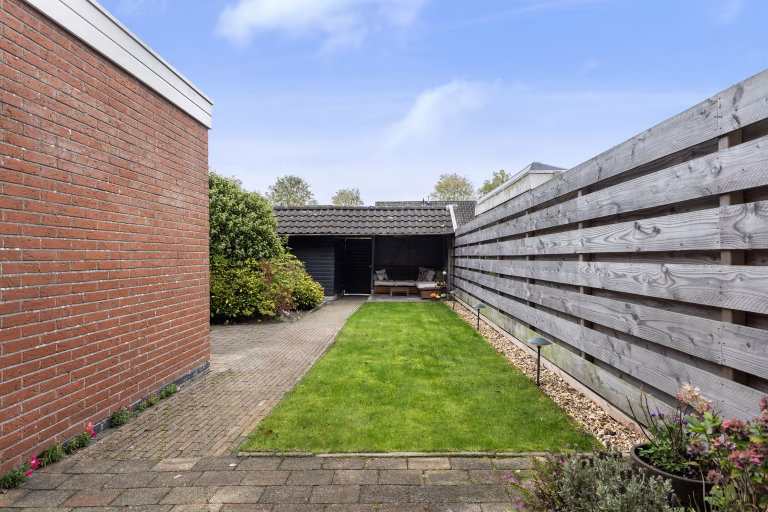 De diepe achtertuin ligt heerlijk rustig en biedt volop privacy. Er is ruimte voor een terras, speelplek of moestuin én dankzij de houten berging met elektra heb je ook voldoende opbergruimte. De tuin is via een achterom bereikbaar.