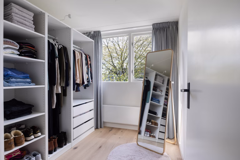 De vlierging biedt extra bergruimte. Daarnaast hangt hier ook de Nefit CV ketel uit 2021.