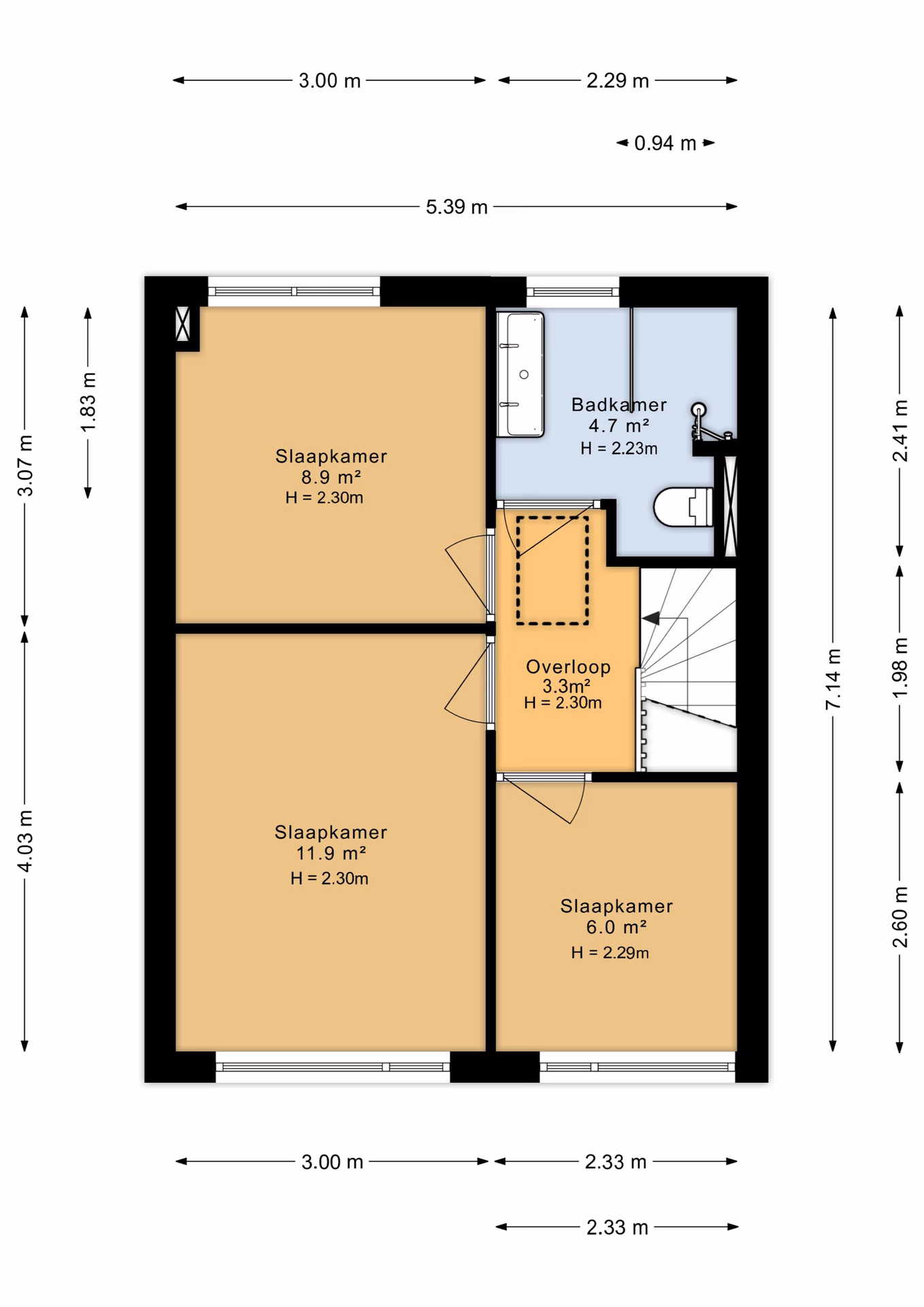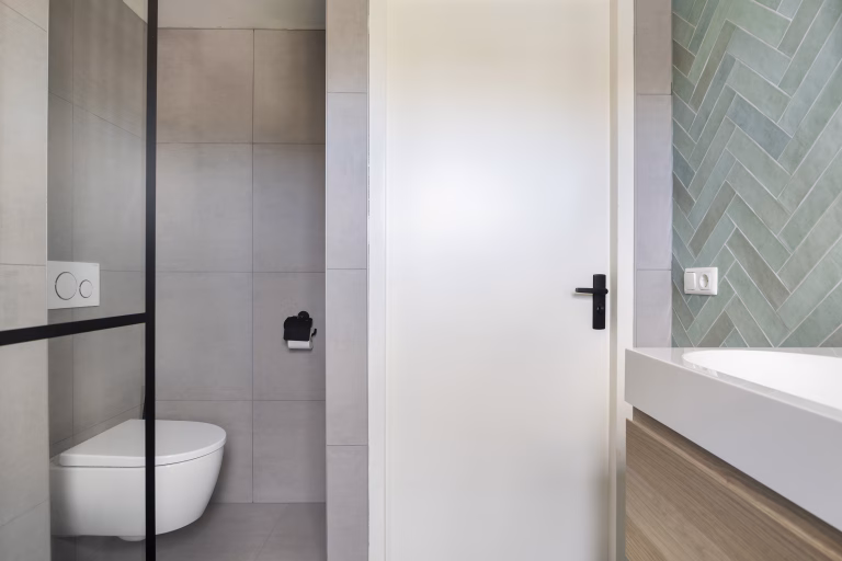 Op de eerste verdieping bevinden zich drie slaapkamers en een prachtige badkamer met vloerverwarming, een ruime inloopdouche, toilet en wastafelmeubel.