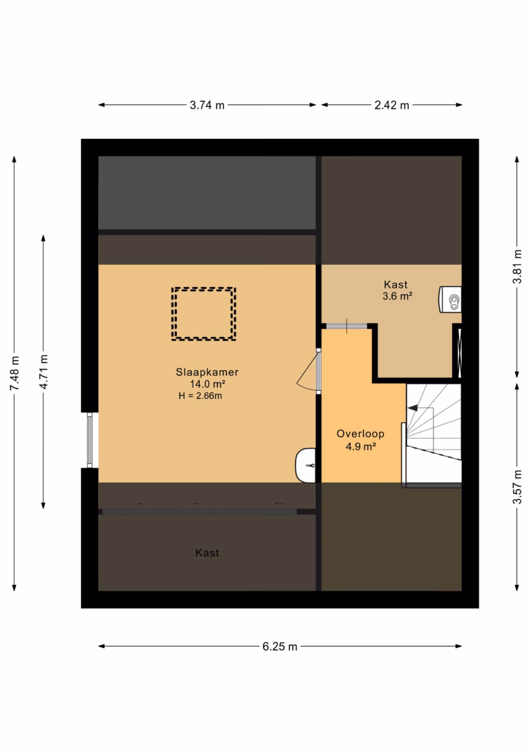 Op de tweede verdieping vind je een ruime overloop met berging en de vierde slaapkamer. Een volwaardige kamer die ook uitstekend kan dienen als werk- of hobbyruimte.