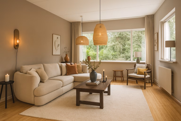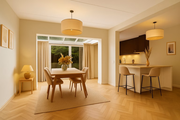 - Lichte woonkamer met uitgebouwd eetgedeelte